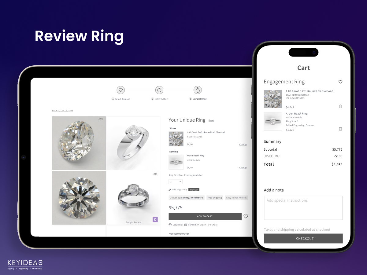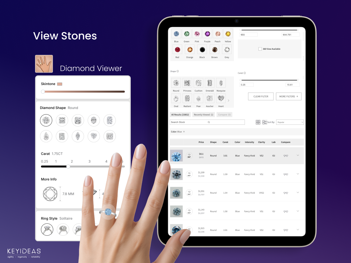 - Integrated diamond virtual try-on feature on the diamond detail page.