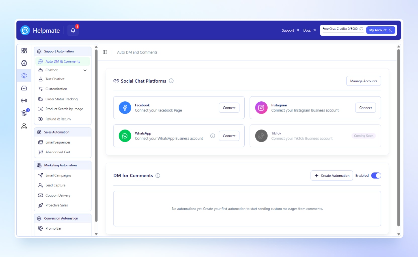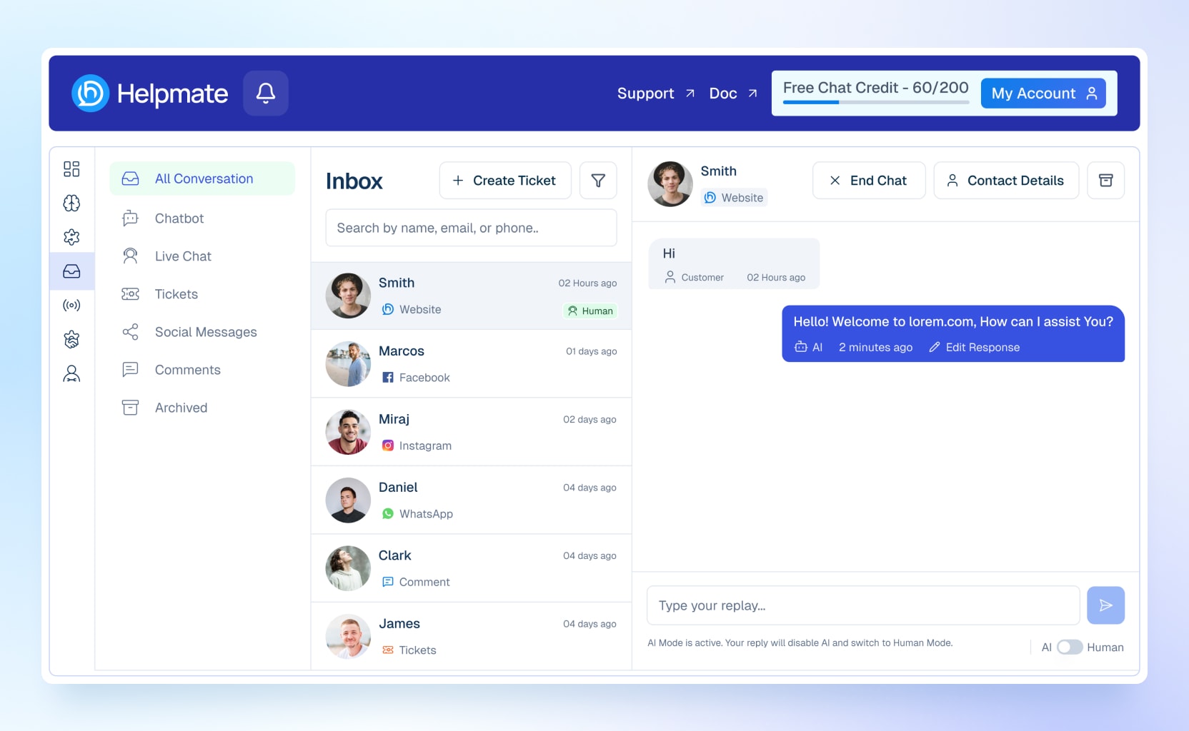 Helpmate supports multiple communication channels to unify customer support automation.