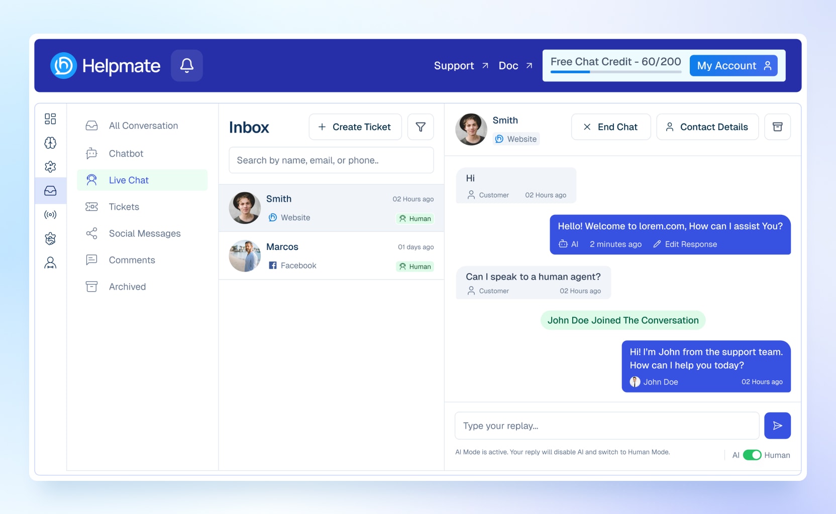 Helpmate – Live, Social & AI Chat with Built-in CRM