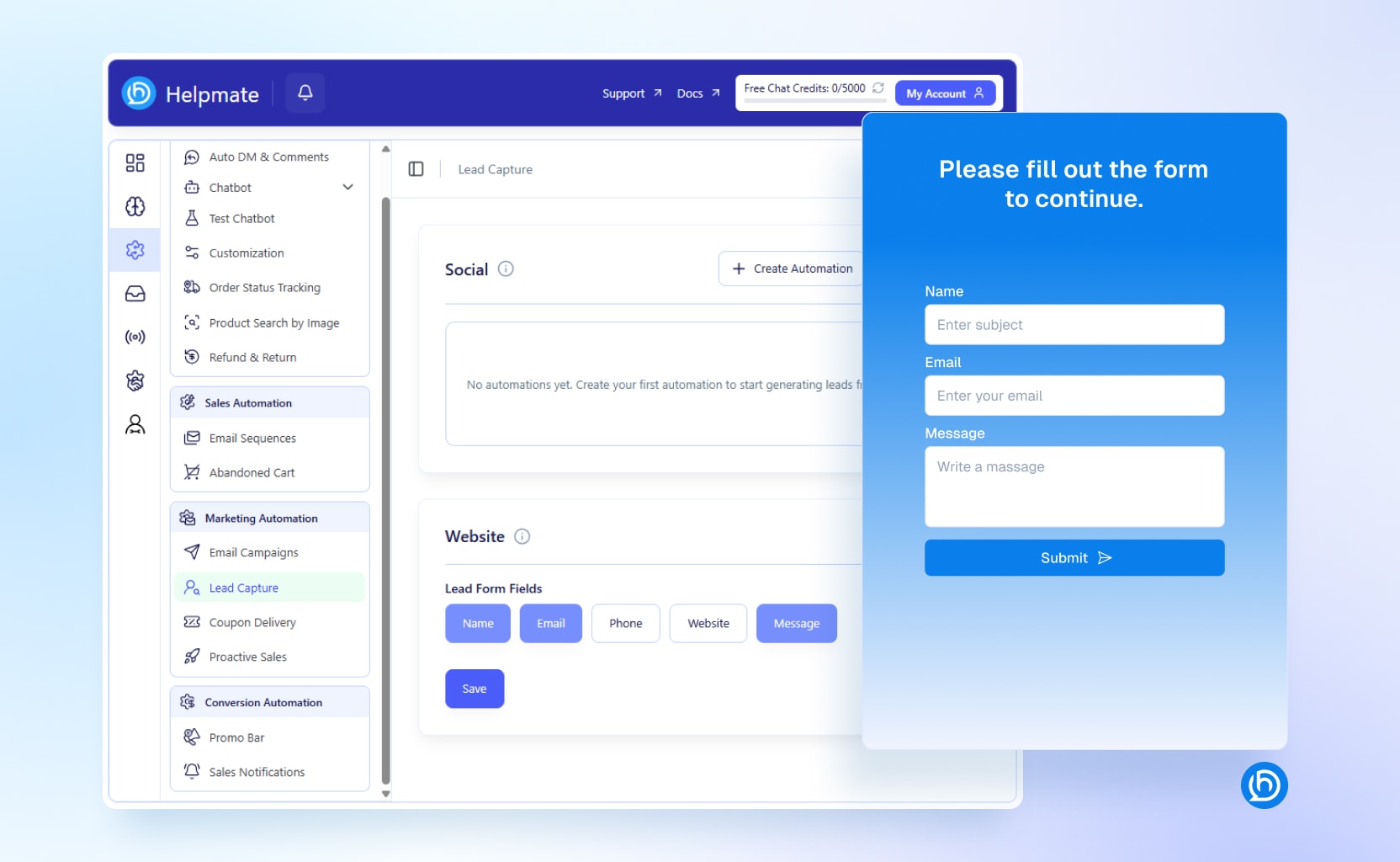 - Lead capture automation