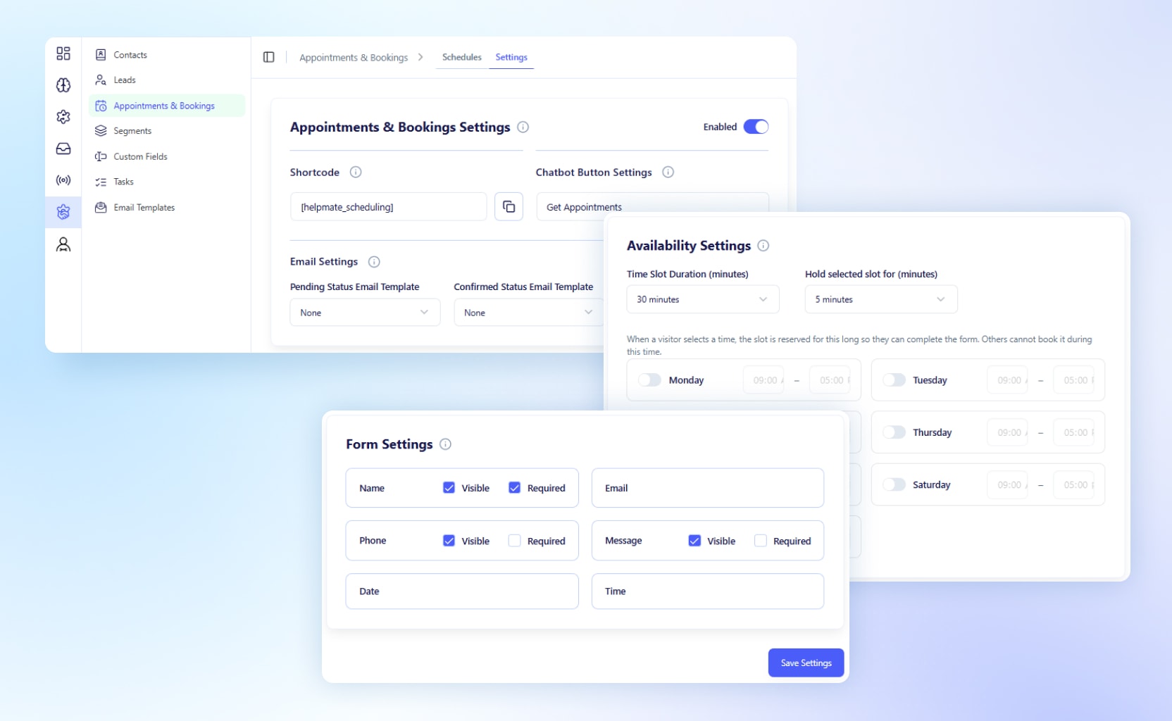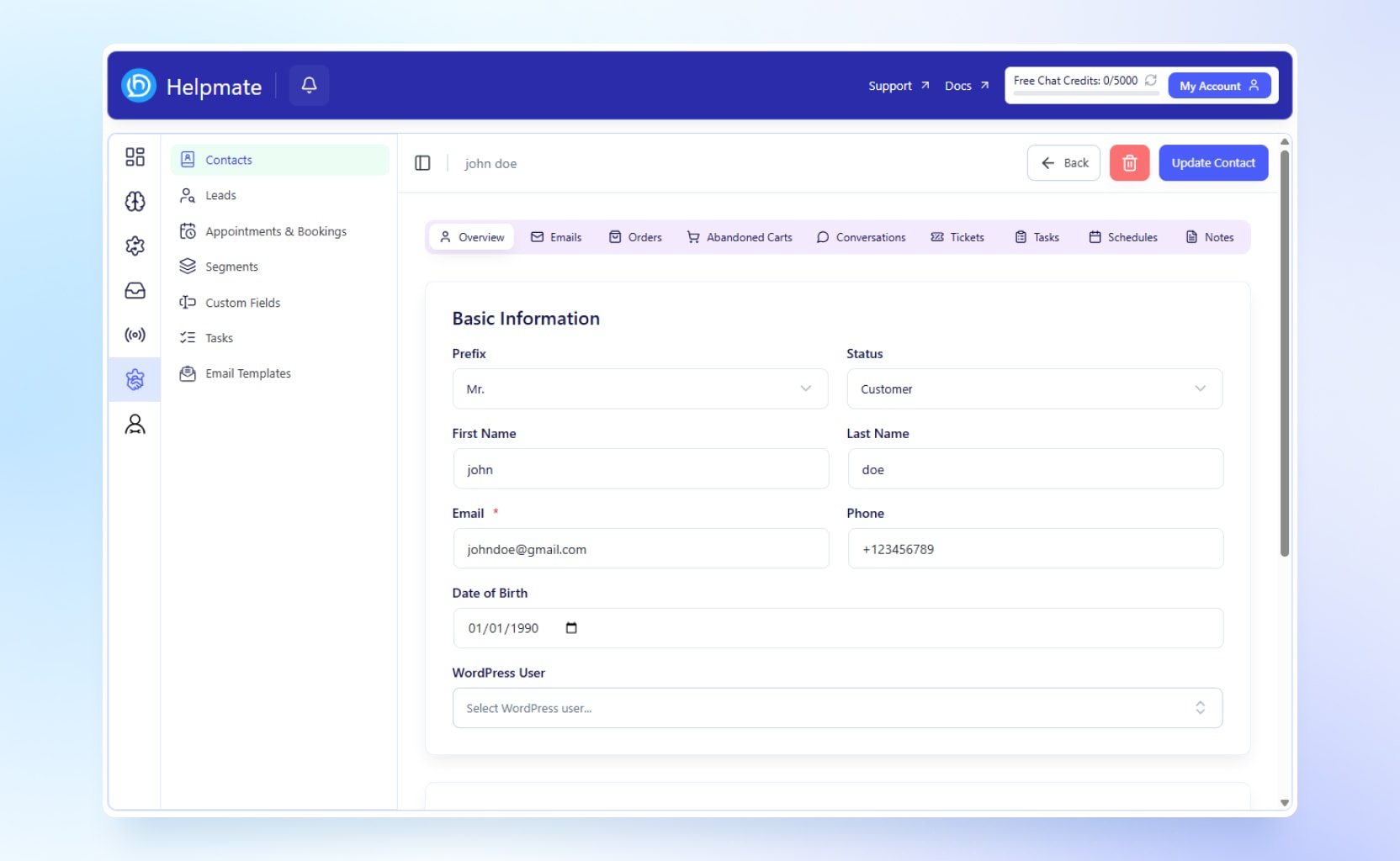 This AI chatbot for WordPress helps automate customer support, manage leads, handle live chat conversations, run booking and appointments, and centralize CRM data inside your WordPress dashboard.